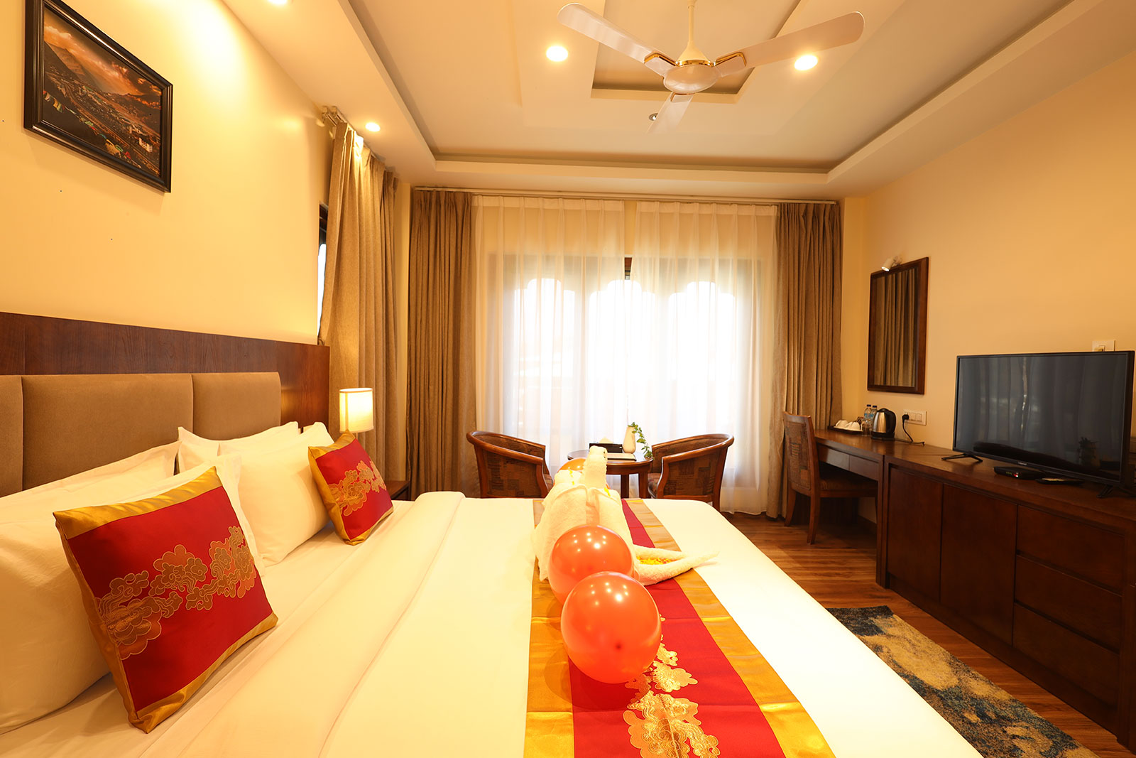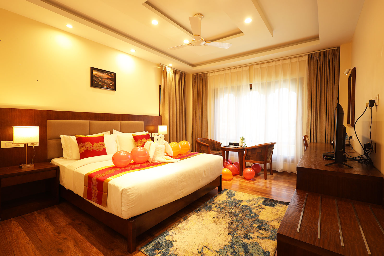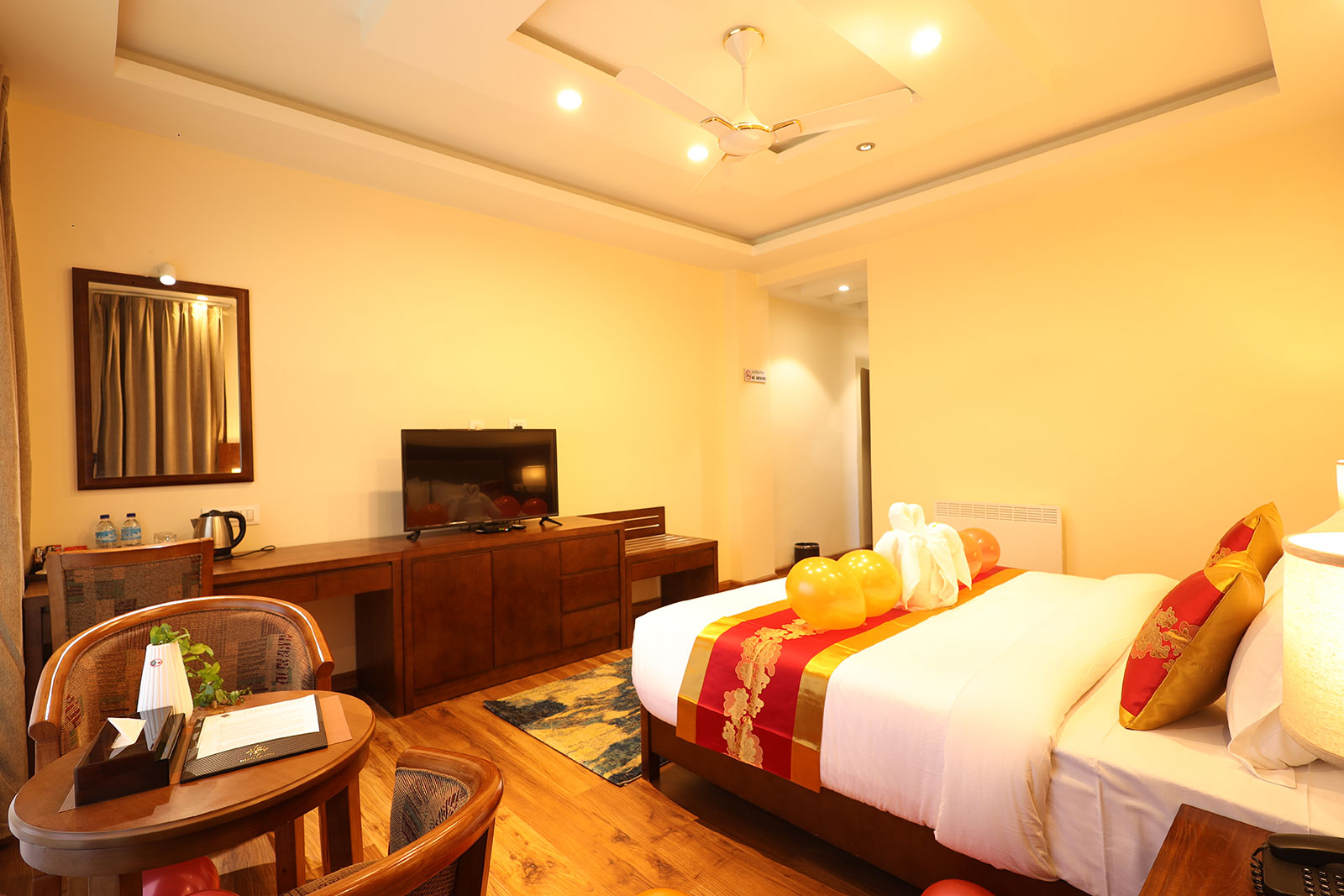 Our Riverfront Deluxe Rooms offer the perfect mix of elegance and comfort, ensuring a peaceful retreat. Thoughtfully designed, these rooms feature a plush King-size or Twin beds along with a cable TV for your entertainment. The well-appointed interiors create a cozy ambiance, making your stay truly delightful.